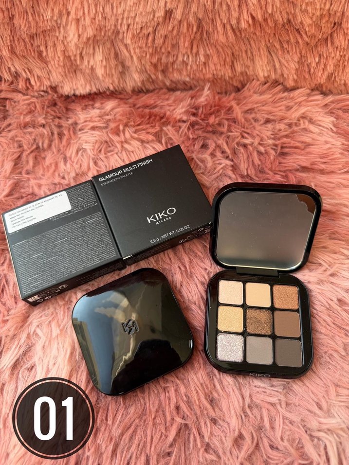 KIKO Glamour Multi Finish göz farı paleti, bej ve koyu tonlarda dokuz renk içerir. Mat ve ışıltılı dokularla birlikte, uygulama için aynalıdır. Ürün sıfır ve etiketlidir.