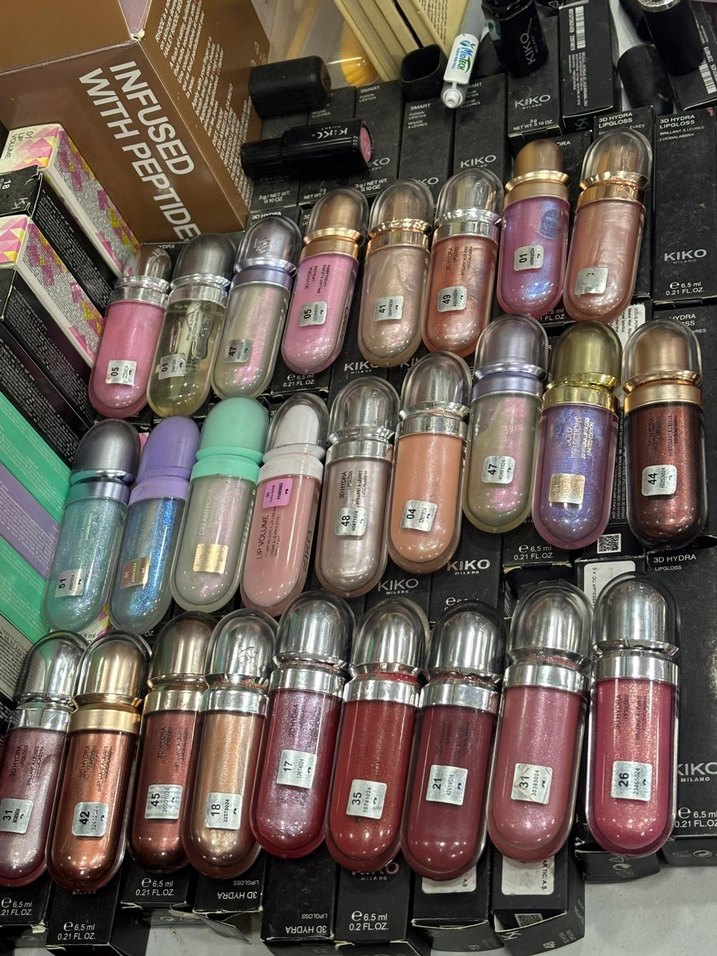 KIKO markasına ait, hafif ve canlı çok renkli ruj seti. Metalik kapaklı şık tüplerde sunulmaktadır.