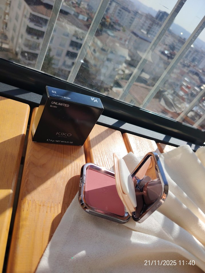 KIKO markasına ait koyu bej tonunda kompakt pudra, şık bir kutu ve ayna ile birlikte gelir.. ✨