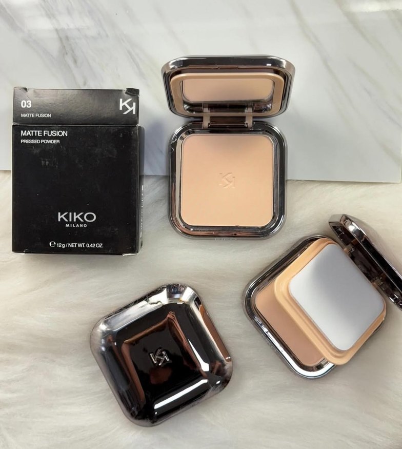 KIKO Fusion açık bej tonunda, yumuşak mat bitişli pürüzsüz kapatıcılık sağlayan pudra. Aynalı kompakt kutuda ve aplikatörlü.