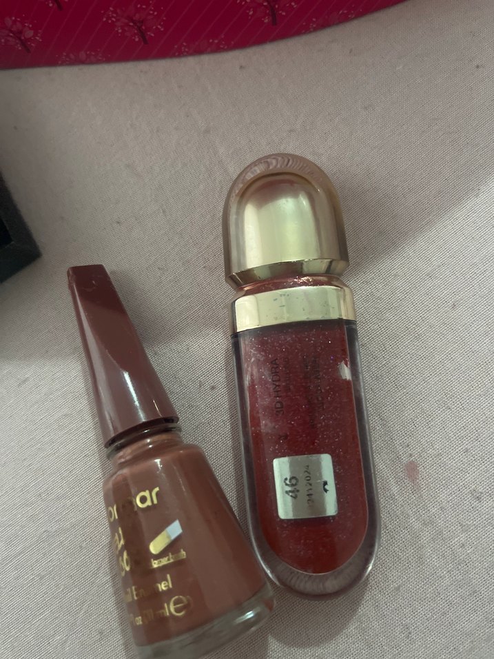 Gözüktüğü kadar kullanıldı Parlak bordo renkte, altın kapaklı şeffaf şişede oje. Canlı tırnaklar için uygun.