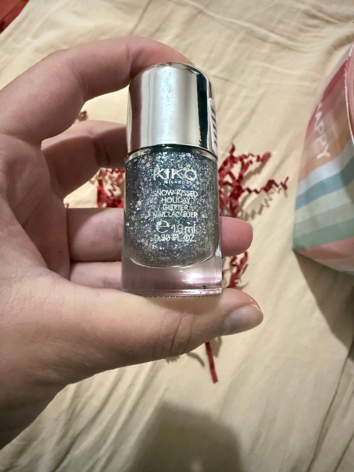 Kiko gri simli oje, 8 ml şişede parıltılı bitiş sağlar. Tırnaklarda ışıltı katmak için uygundur. 0