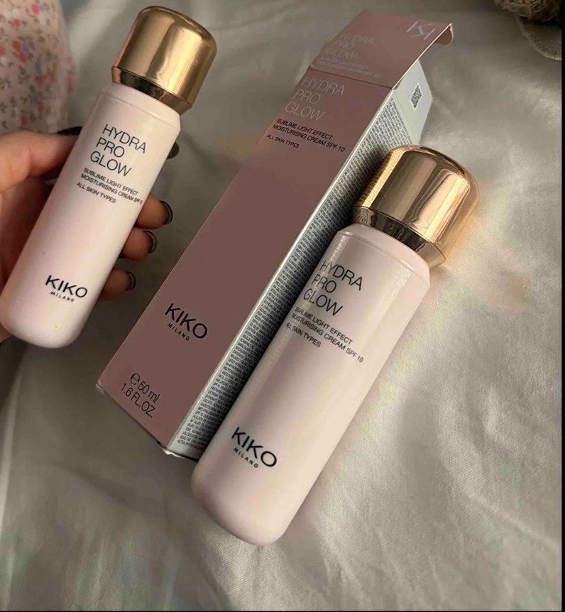 KIKO Hydra Pro Glow, pastel bej renkte hafif dokulu, aydınlatıcı ve kapatıcı kremdir. Hafif kapatıcılık ve SPF 10 koruma sunar.