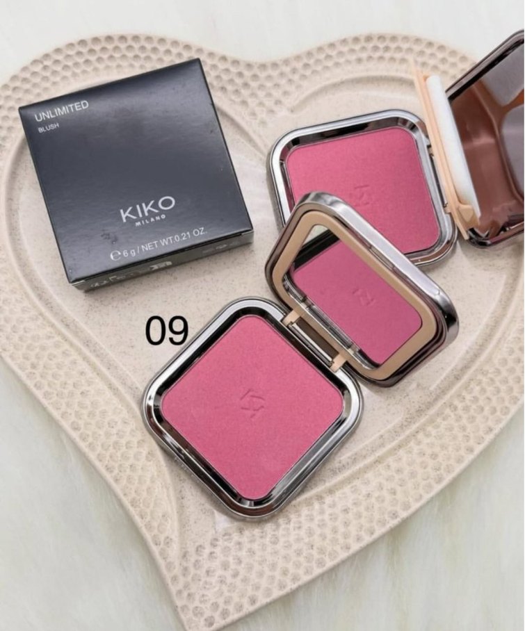KIKO JNLIMITED serisine ait 09 numaralı pastel pembe allık, doğal ve yumuşak bir görünüm sağlar. Aynalı kompakt kutuda sunulur.
