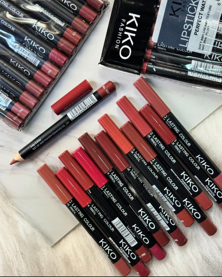 KIKO koyu kırmızı dudak kalemi, kalıcı renk ve pürüzsüz doku ile dudak hatlarını belirginleştirir.