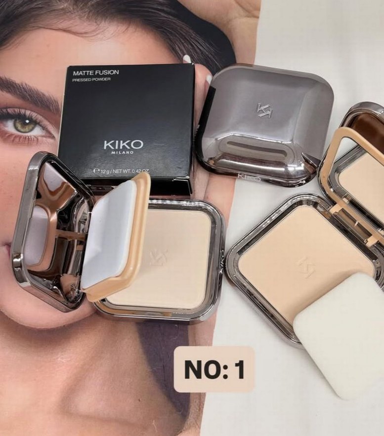 KIKO Matte Fusion preslenmiş pudra, No:1 açık bej tonuyla cilde mat ve pürüzsüz bir görünüm sağlar. Sünger aplikatör ile kolay uygulanır.