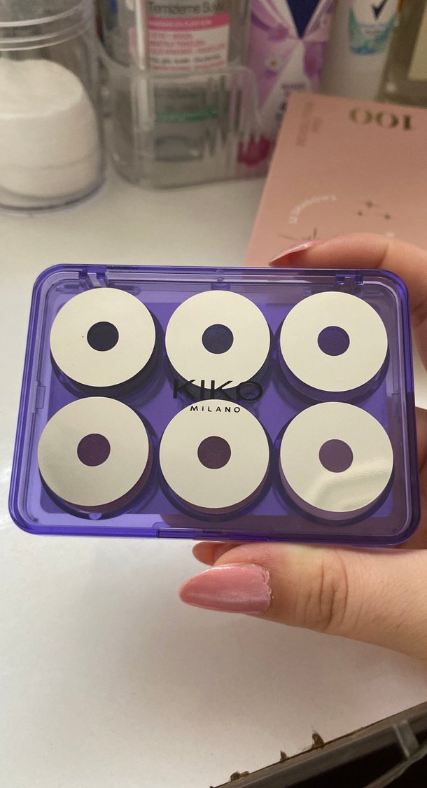 Kiko Milano'ya ait, içinde altı adet açık mor makyaj süngeri bulunan şeffaf kutuda set. Üzerinde 888 numarası yer alır.