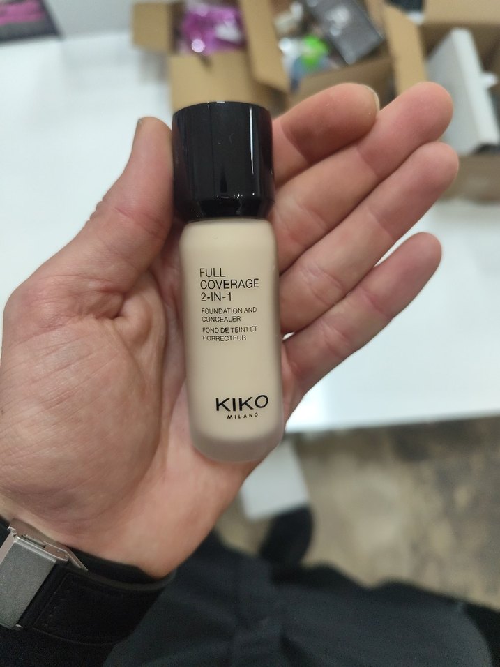 KIKO Milano Full Coverage 2'si 1 Arada fondöten ve kapatıcı, açık bej renginde tam kapatıcılık sağlar.
