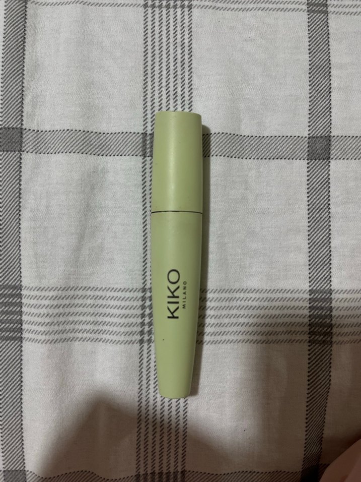 KIKO Milano markasına ait haki renkli, hafif gri tonlu maskara, kirpiklere doğal ve belirgin bir görünüm kazandırır.