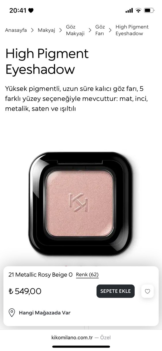 Yüksek pigmentli, uzun süre kalıcı göz farı. Mat, inci, metalik, saten ve ışıltılı olmak üzere 5 farklı yüzey seçeneği bulunur. Renk: pastel bej, metalik. Birkaç kez kullanıldı.