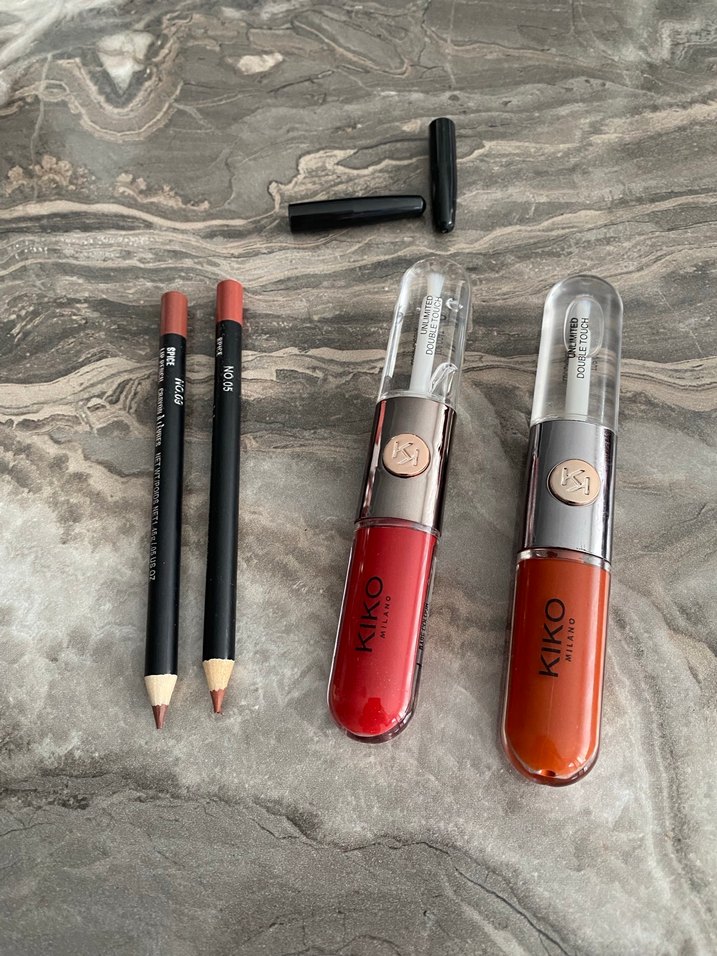 Kiko Milano markasına ait kırmızı tonlarında iki ruj ve iki dudak kalemi içeren set, dudakları belirginleştirmek ve renklendirmek için uygundur.