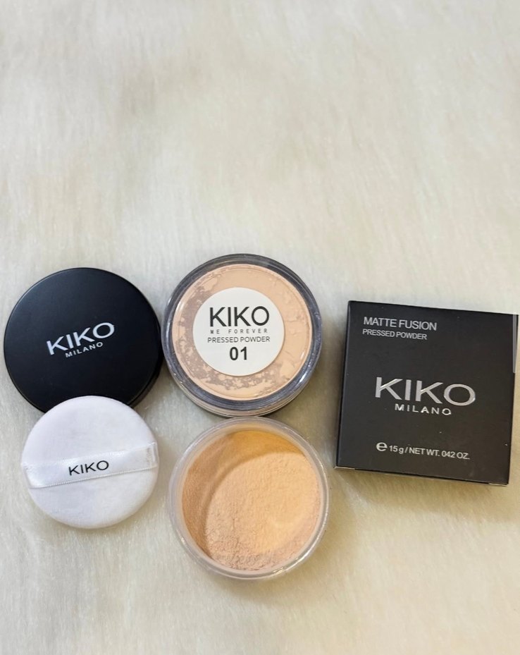 KIKO Milano Matte Fusion preslenmiş pudra 01 numara açık bej renkte, mat bir görünüm sağlar. Sünger aplikatör ve kutusu ile birlikte.