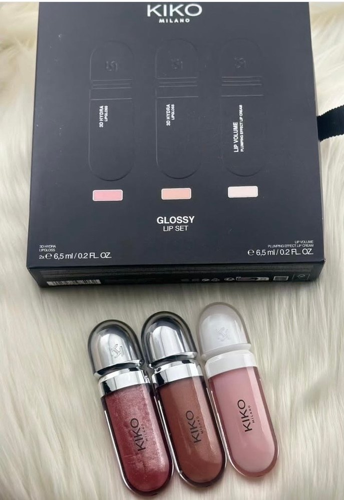 Kiko Milano parlak bitişli, açık pembe tonlarında üç ruj içeren 6,5 ml'lik set.