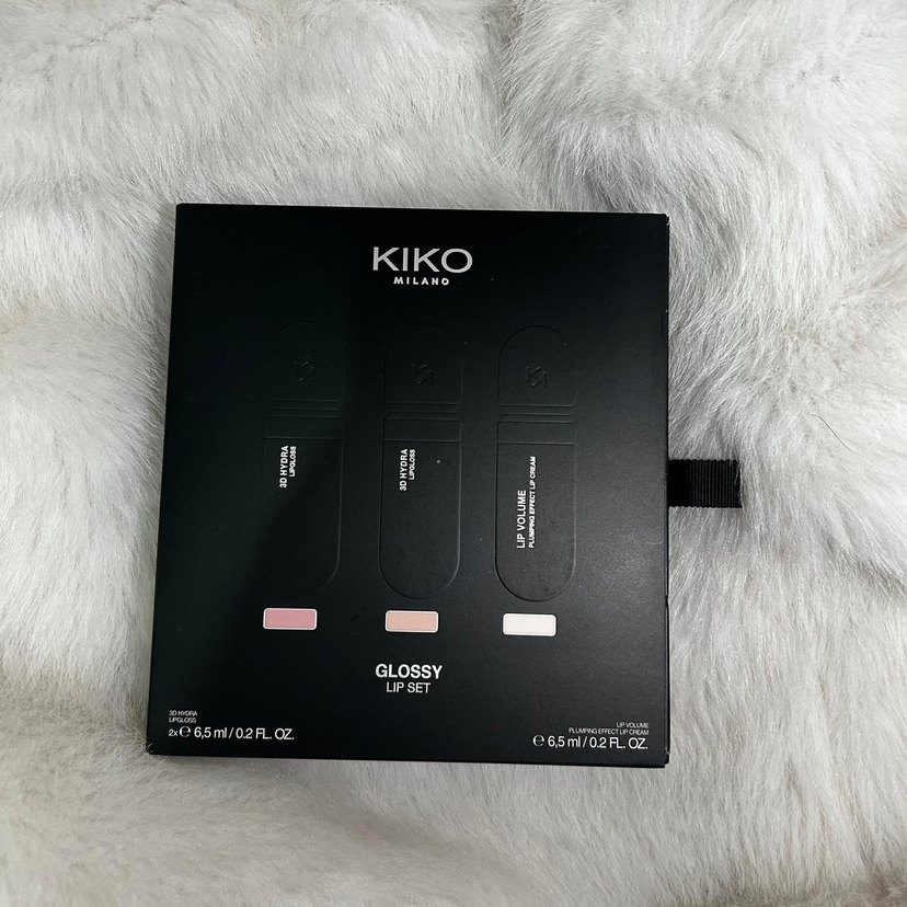 KIKO Milano parlak ruj seti, 6.5ml'lik üç adet bej tonlarında renkten oluşur, dudaklara parlak bir görünüm sağlar.