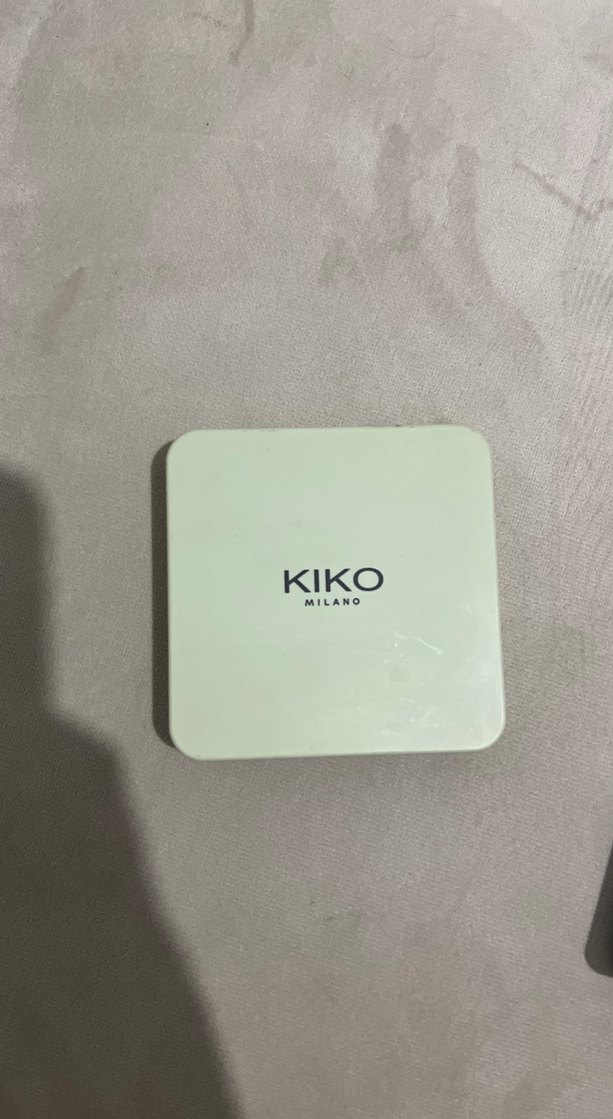 KIKO Milano marka, pastel haki renkli, kompakt kare tasarımlı taşınabilir power bank. Üzerinde marka logosu bulunur.