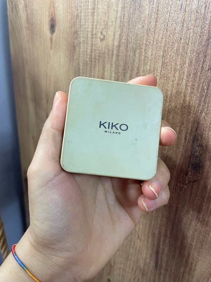 KIKO Milano pastel bej renkte, doğal görünüm için yumuşak yapılı allık. Kompakt ve taşınabilir.