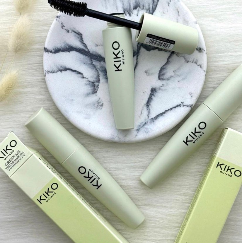 Kiko Milano maskara, pastel haki renkte, yumuşak fırça ile kirpikleri belirginleştirir.