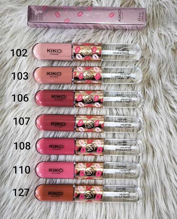 KIKO Milano'nun pastel tonlarda, çeşitli pembe renk seçenekleri sunan çift uçlu şeffaf aplikatörlü ruj seti. Renkler: 102, 103, 106, 107, 108, 110, 127. adet 200