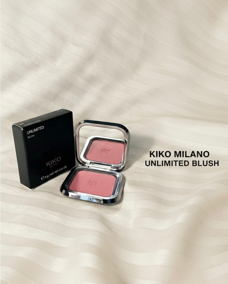 KIKO Milano'nun pastel pembe tonlarında, aynalı şık gümüş kutuda allığı. ✨
