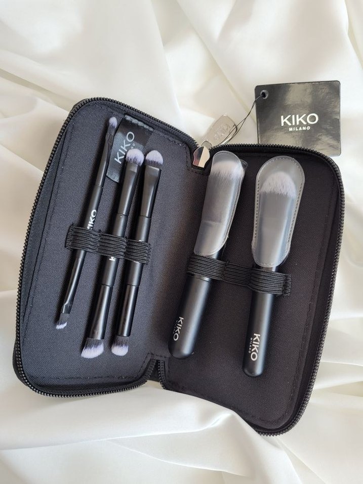 KIKO Milano siyah makyaj fırça seti, yumuşak kıllara sahip çeşitli fırçalar ve kullanışlı fermuarlı kılıf içerir. ️