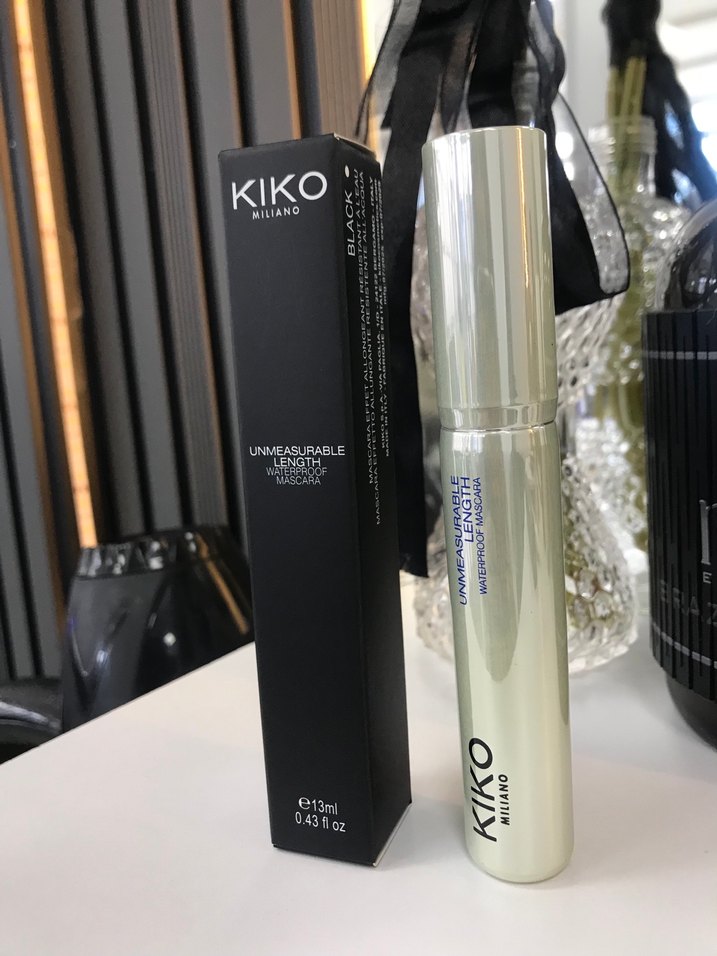 KIKO Milano Unmeasurable Length maskara beyaz ambalajda, kirpikleri uzatan hassas fırçaya sahiptir. 13 ml boyutunda ve uzatma etkisi sunar.