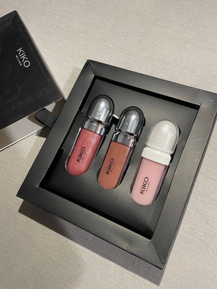 Kiko Mini Ruj Seti, pastel pembe tonlarında üç farklı renkten oluşur. İki metalik ve bir krem dokulu ruj içerir.