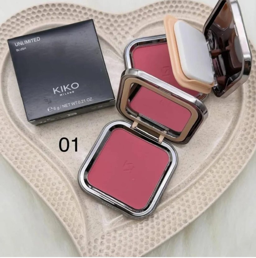 KIKO parlak pembe renkte, aynalı kompakt kutuda 6g pudra. 01 numara canlı renk sağlar.