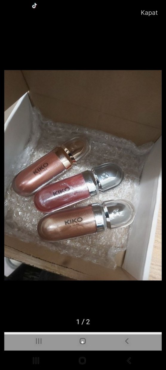 Kiko markalı, parlak bej tonları içeren üçlü ruj seti, canlı ve parlak bir görünüm sağlar.