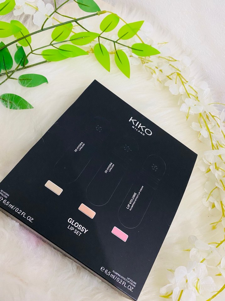 KIKO parlak bitişli siyah ambalajda üç farklı renkten oluşan ruj seti. Her ruj 6,5 ml hacmindedir. Üçlü set Gloss