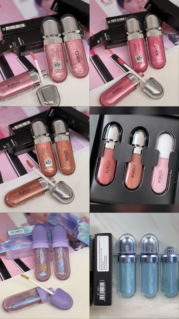 KIKO markasına ait, pastel tonlarda çok renkli ruj seti. Parlak ve yumuşak dokulu, şık gümüş kapaklı tüplerde sunulur.