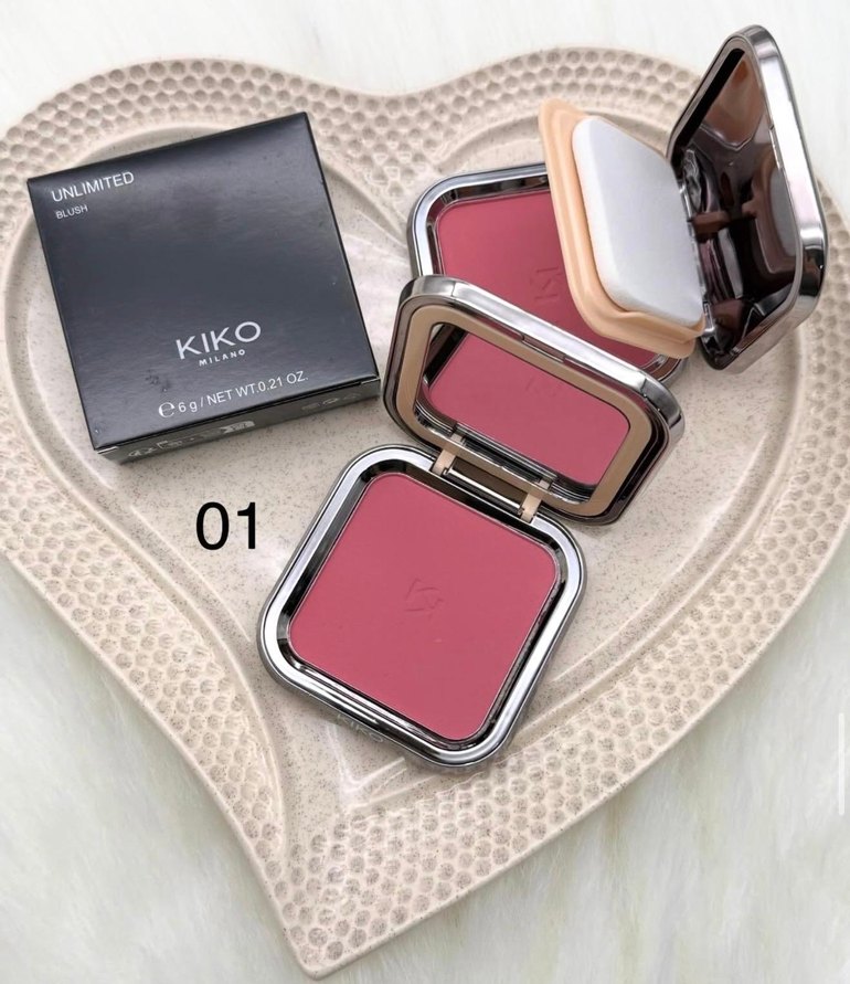 KIKO markalı, 01 numaralı pembe pudra, kompakt tasarım ve aplikatör sünger içerir. Pastel pembe tonu yumuşak bir görünüm sağlar.