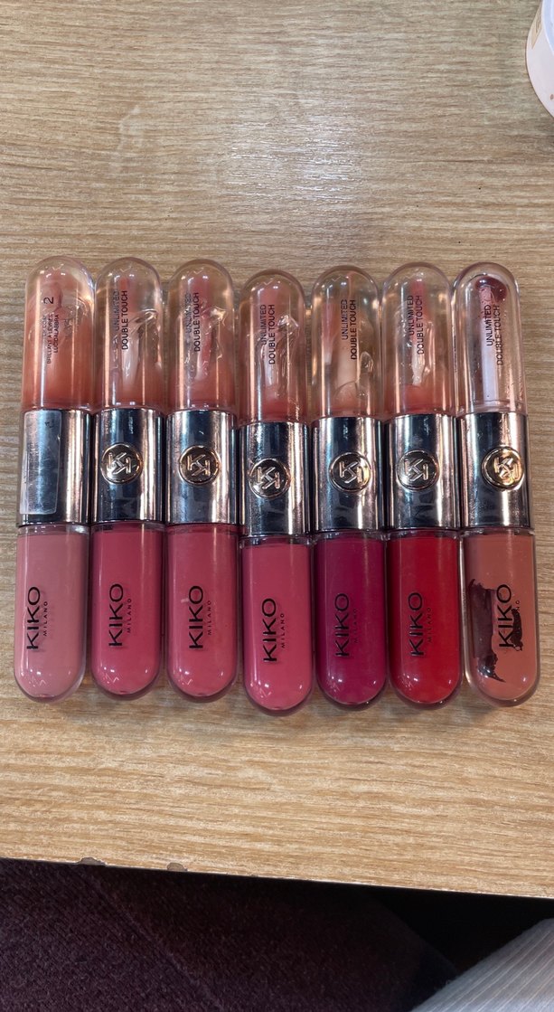 Orijinal değildir. farklı açık pembe tonlarında ve parlak gümüş bantlı, şeffaf kapaklı ruj seti. 7adet