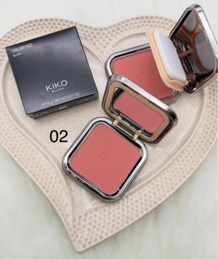 KIKO 02 numara pastel pembe renkte, ayna ve sünger aplikatörlü kompakt pudra. Doğal bitiş sağlar.