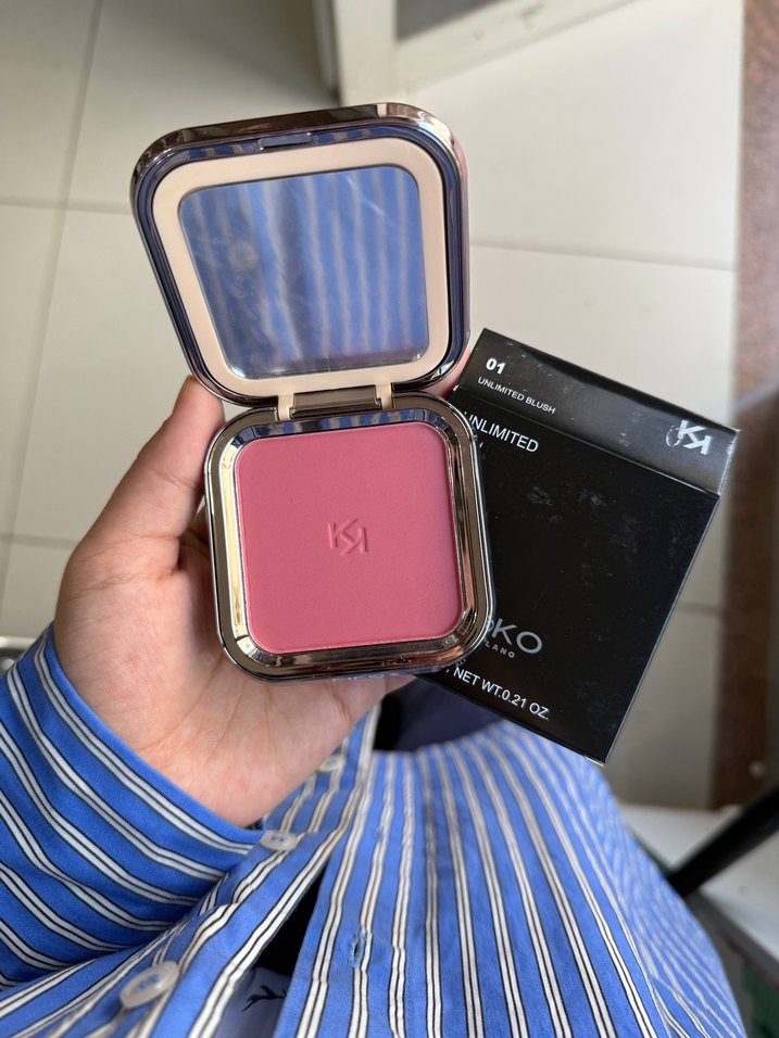 KIKO pudra allık, pastel pembe 01 renginde, kompakt kutuda ve aplikatörlü. Yumuşak dokusuyla doğal bir görünüm sağlar.