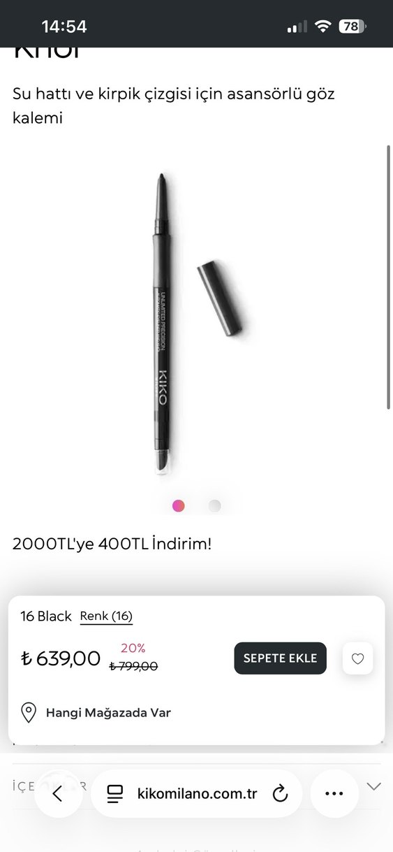 KIKO siyah göz kalemi, pürüzsüz dokusuyla hassas uygulama sağlar. Kolay karıştırma için entegre bir dağıtıcıya sahiptir.