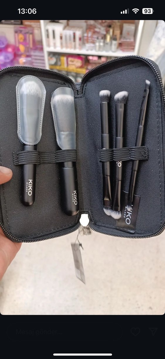 KIKO marka siyah renkli, beş fırçadan oluşan makyaj seti, fermuarlı kompakt kutuda sunulmaktadır. ️