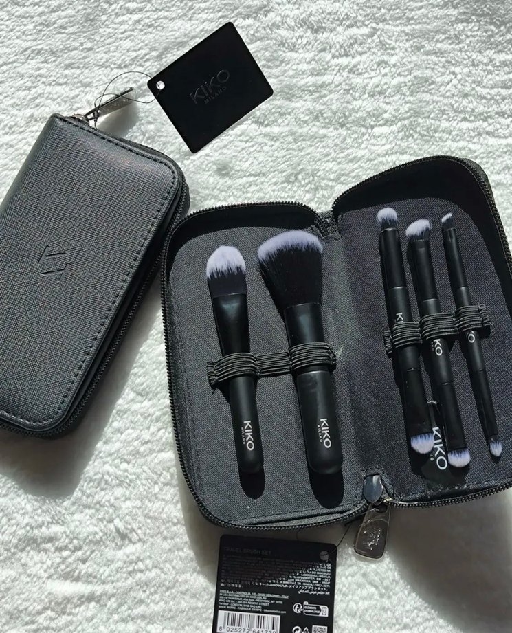 Kiko'nun siyah makyaj fırça seti, yumuşak kıllara sahip beş fırça ve kolay taşınabilir siyah fermuarlı çanta içerir. ️
