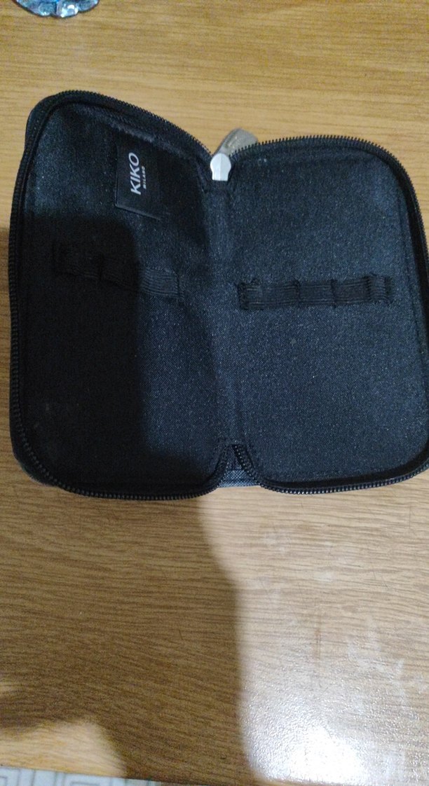 KIKO markasına ait siyah makyaj fırçası kılıfı, fermuarlı ve fırçaları tutan elastik bantlara sahiptir. Kompakt ve dayanıklıdır. dış mevcuttur bu yüzden Uygun makul fiyatadadir rengi siyah değildir gıri renk. açıklamaları lütfen okuyalım tşk ederim