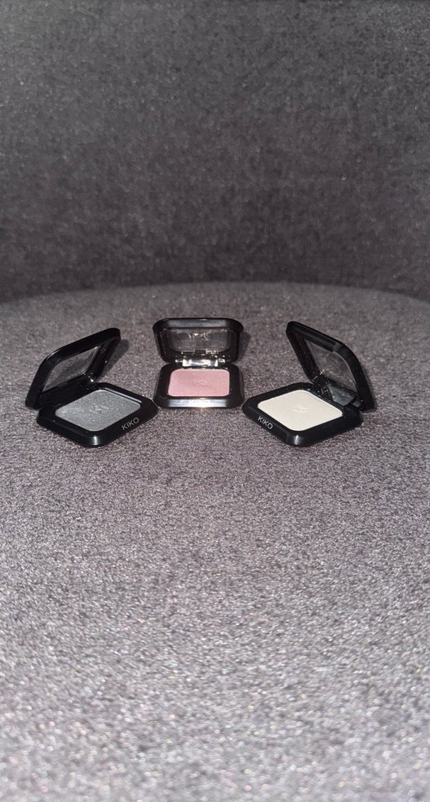 Kiko tekli göz farları gri, pembe ve beyaz tonlarda, pürüzsüz uygulama ve hafif ışıltı sunar. 3 lü fiyatıdır