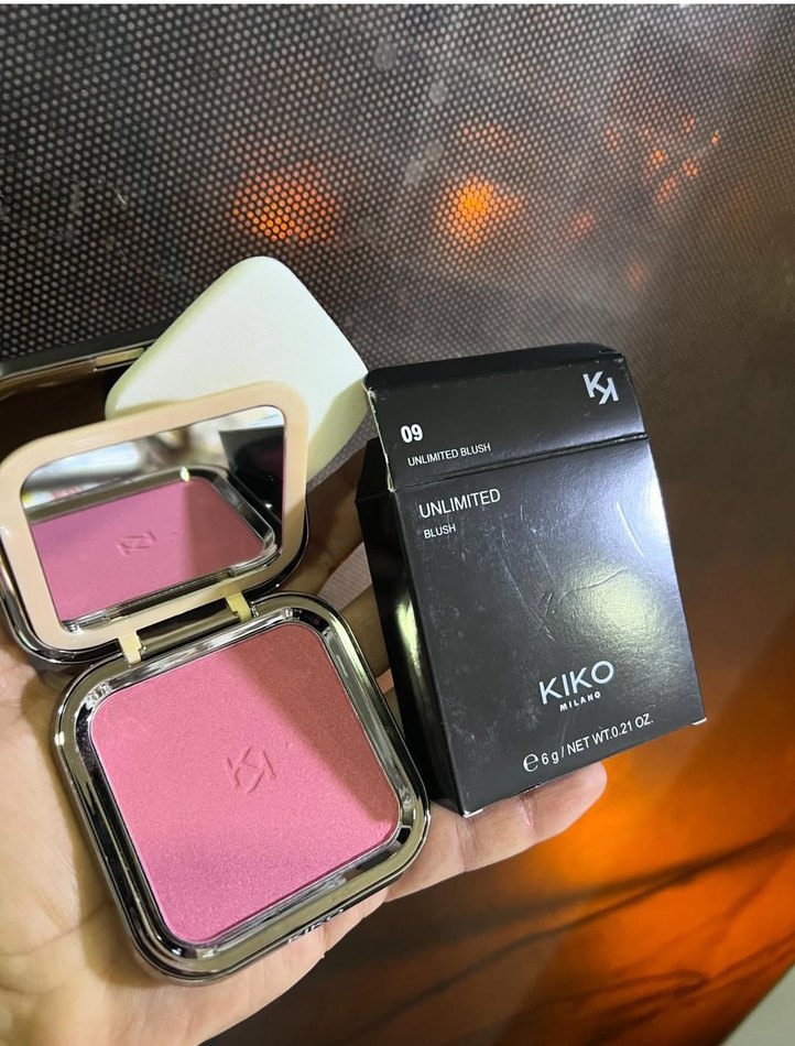 KIKO Unlimited serisi koyu pembe 09 numara allık, aynalı kompakt kutuda yumuşak aplikatör ile sunulur. Yanaklarda doğal ve pürüzsüz bir görünüm sağlar.