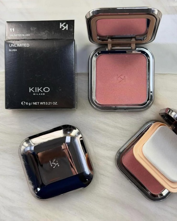 KIKO Unlimited koyu pembe toz allık, 6g net ağırlığında, şık kompakt kutuda ve aynalı.