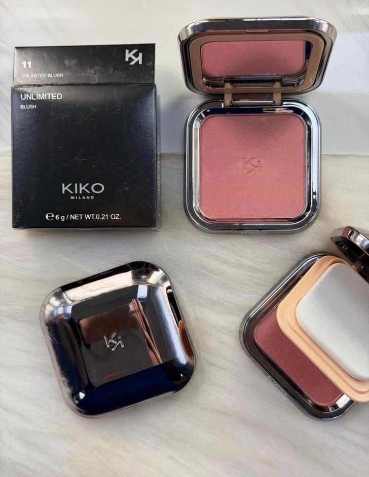 KIKO Unlimited koyu pembe allık, 6g. Doğal bitişli kompakt pudra allık. Şık kare kutuda sunulur.