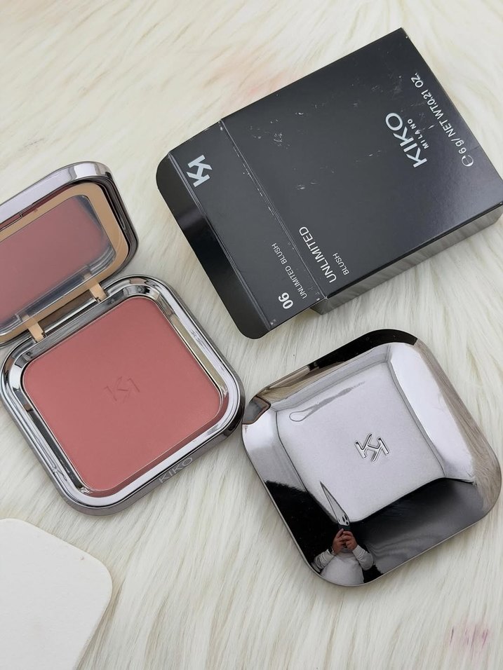 Kiko Unlimited pudra 06 Pink, şık gümüş kutusunda ve siyah kutusuyla gelir. Yüze canlı pembe, pürüzsüz bir görünüm sağlar.