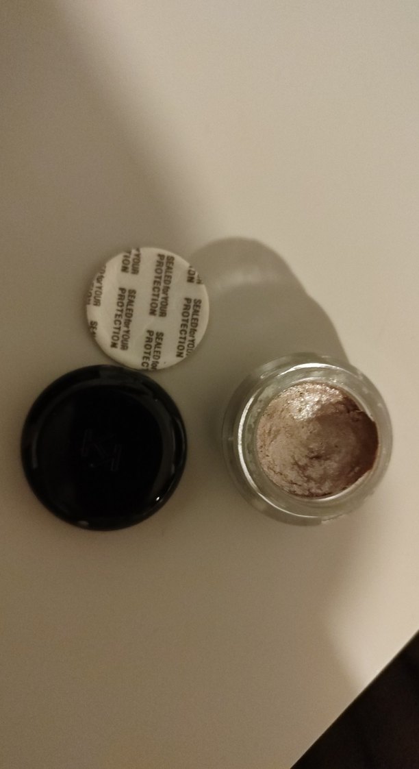 Küçük bir kavanozda, siyah kapak ve koruyucu mühürle sunulan bej göz farı, yumuşak ve ışıltılı bir görünüm sağlar. ️