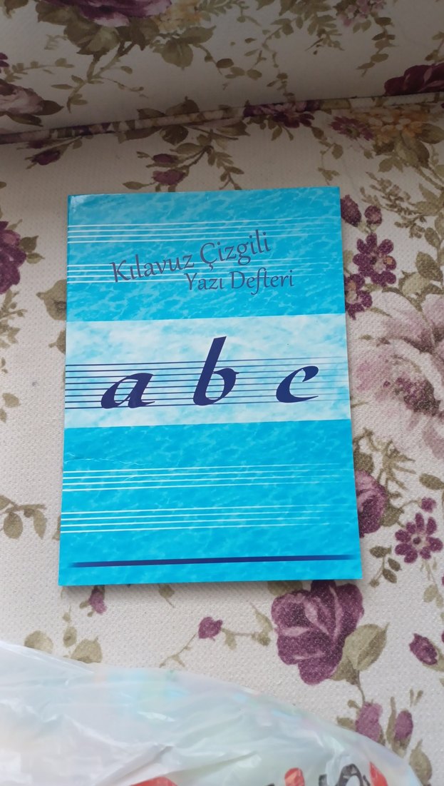 Mavi kapaklı kılavuz çizgili yazı defteri, düzgün yazı çalışmaları için uygundur. Kapakta alfabe harfleri yer alır. ✍️