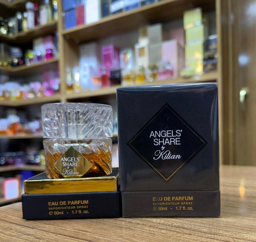 Kilian Angels' Share parfümü, eau de parfum sprey şeklindedir. Şık şişe ve siyah kutu ile sunulur.