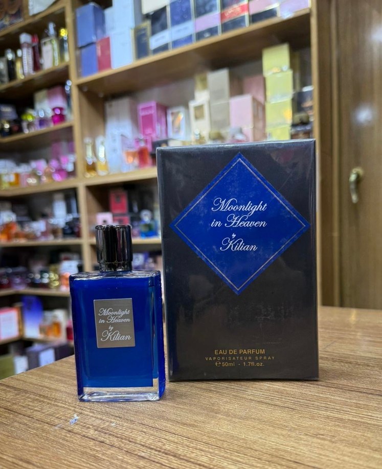 Kilian Moonlight in Heaven, 50 ml şişede kadın parfümüdür. Derin mavi tasarımı ve uyumlu kutusu vardır.