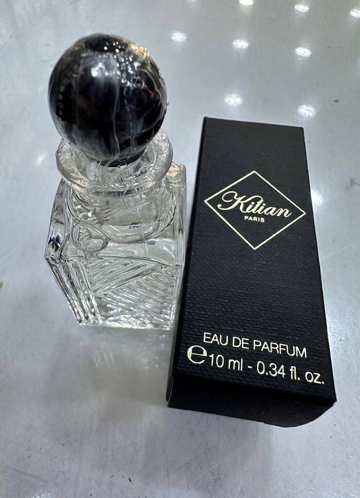 Kilian Paris kadın parfümü, 10 ml şişede, Eau de Parfum konsantrasyonunda. Siyah kutusu ile birlikte gelir.