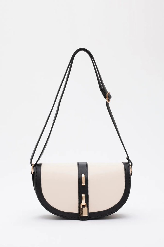 Kilit detaylı Beyaz Deri Kadın Çanta