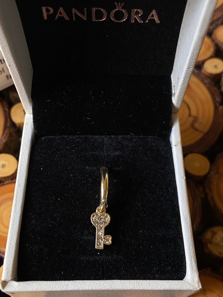 Pandora'nın parlak altın renginde, zincir detaylı anahtar figürlü charmı, romantik akşamlar için klasik ve bohem tarzı yansıtıyor.
